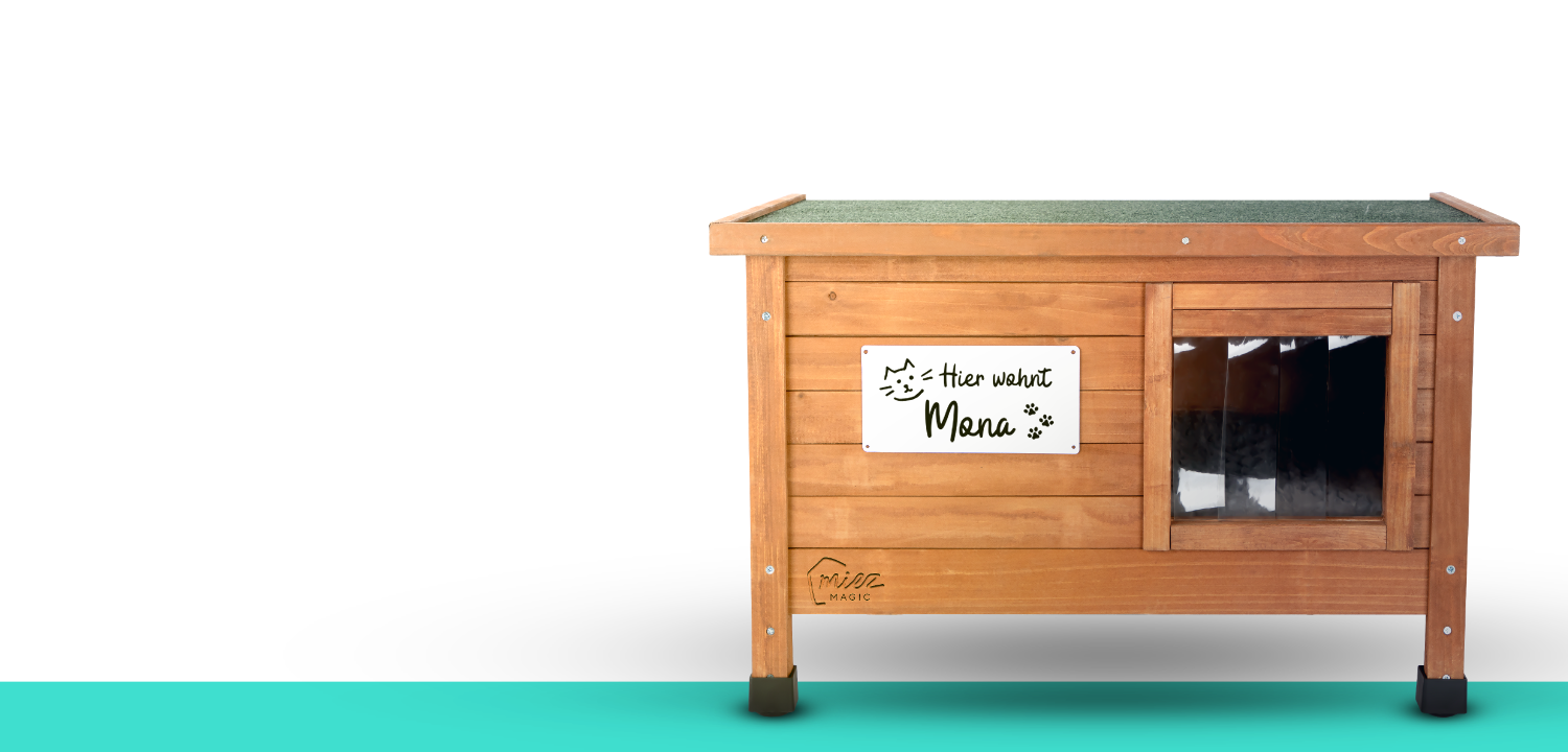 Jedem Katzenhaus liegt ein Hausschild bei, welches personalisiert werden kann. Somit verleihst Du dem neuen Katzenhaus eine persönliche Note.