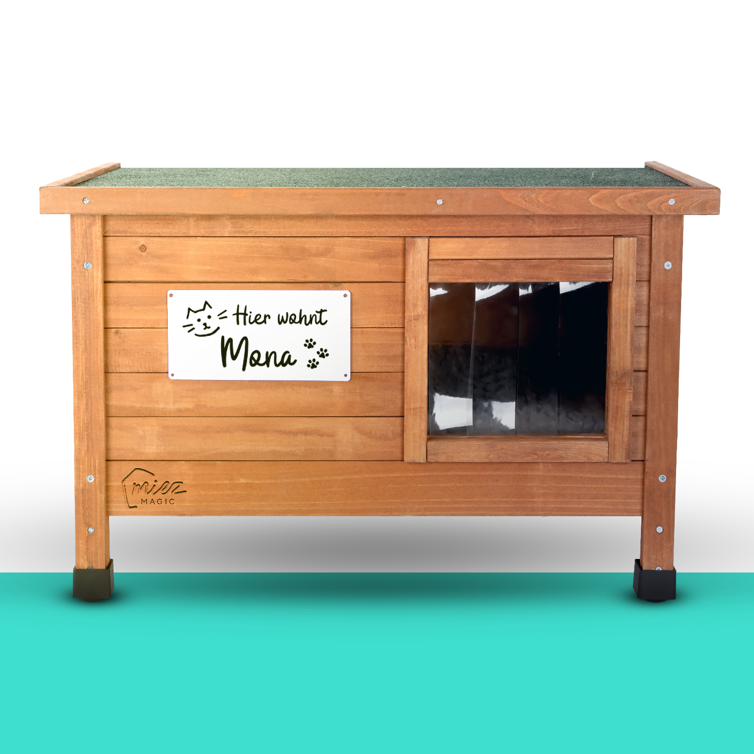 Was ist ein Haus ohne Türschild? Mit dem PVC-Schild im Lieferumfang, verleihst Du dem Katzenhaus eine persönliche Note.
